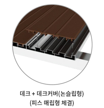 피스 노출없는 데크이며, 데크커버는 논슬립형과 플랫형 2가지 타입 선택가능