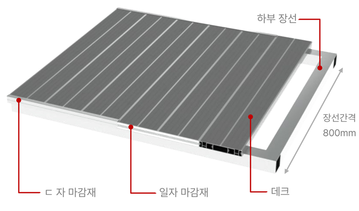 도장품의 단점을 대폭 개선하여 도장이 필요 없는 알루미늄 무도장 논슬립 데크